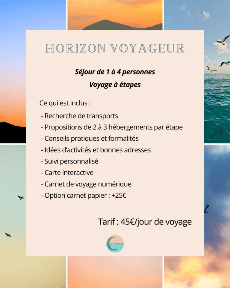 Menu AccueilÀ ProposMes offresAvis clientBlogContactMES OFFRESIci, je vous propose des formules pensées pour transformer vos rêves d’évasion en expériences sur mesure Menu AccueilÀ ProposMes offresAvis clientBlogContact